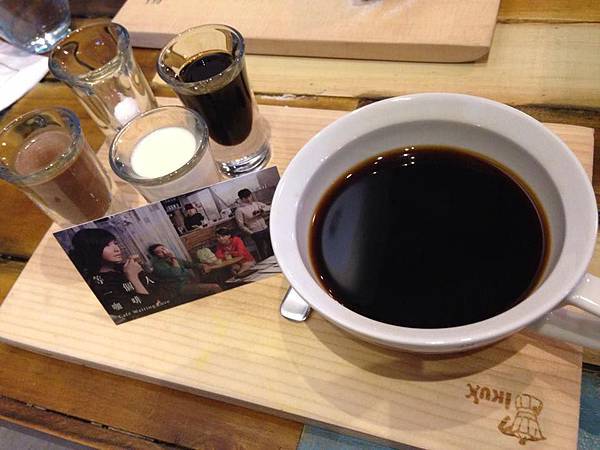 這家店真的有老闆娘特調,可惜一天只限一杯,給剛開門來的第一個客人,這次我點了阿不思特調,它是一杯黑咖啡搭配4種調料:黑糖,鹽,牛奶,摩卡,可以自由調配加入黑咖啡裡面,隨自己喜歡去做調整,味道還不錯,果然跟阿不思的個性一樣隨性。