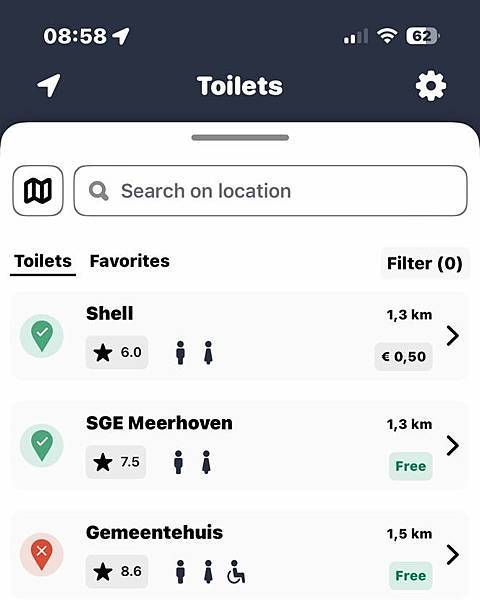 這個app真的可以快速找到附近的廁所!應該適用於歐洲吧?!我目前只有在荷蘭用過,如果有人在其它歐洲用過再幫忙回應一下!!#有人用過嗎分享一下 #有人用過也超有感的嗎